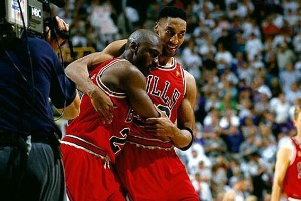 但是,东部决赛乔丹和年轻的皮蓬还是输了。199-91赛季,皮蓬被乔丹带到场均17.8分、7.3篮板、6.2助攻、2.4抢断的数据,两人终于灭掉了难缠的坏孩子军团活塞,皮蓬的季后赛数据场均21.6分、8.9篮板、5.8助攻、2.5抢断,这个小前锋数据像不像詹姆斯?然后,两人就带队夺冠了,而皮蓬也对乔丹暗生情愫,皮蓬变成了公牛的二当家。